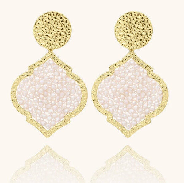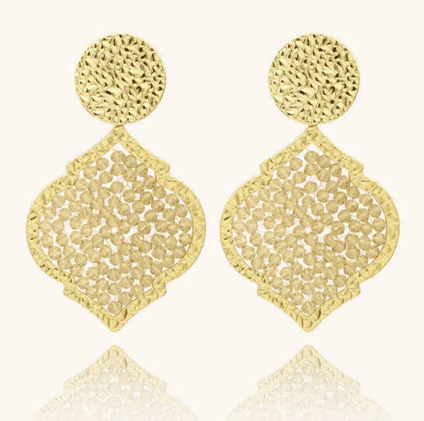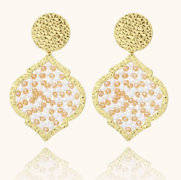 Deze oorbellen worden gemaakt van metaal (nikkel-, cadmium- en loodvrij) met een 23 karaats goudplating van 4 micron (!) en kraaltjes van kristal.