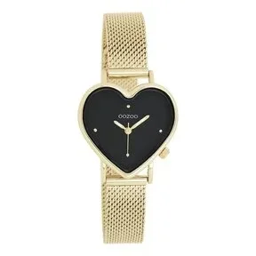 OOZOO Timepieces horloge met een metalen mesh band en kast in de tint goud