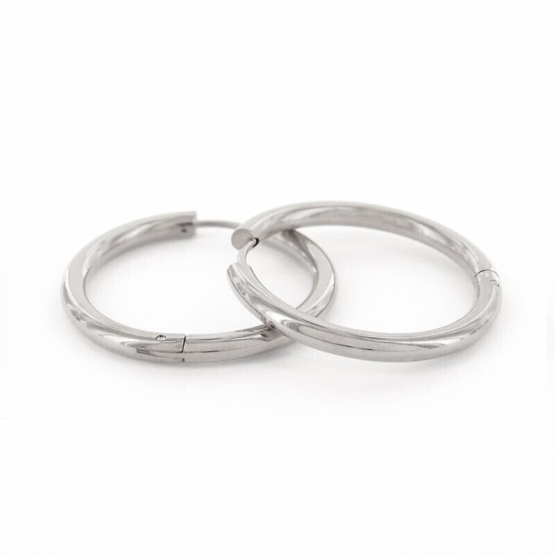 Deze oorbellen zijn gemaakt van nikkelvrij en hypo-allergeen edelstaal, eventueel voorzien van een plating in goud. De oorbel is een zogenaamde klapcreool: sluiten met een makkelijke en stevige klik!Doorsnede: 25 mm