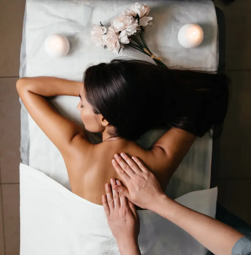 Steek de kaars aan, wacht totdat een eerste laagje was is gesmolten (ca. 15-20 min), blaas de kaars uit en laat de was 1 minuut afkoelen. Schenk de olie in je hand en masseer over het lichaam.