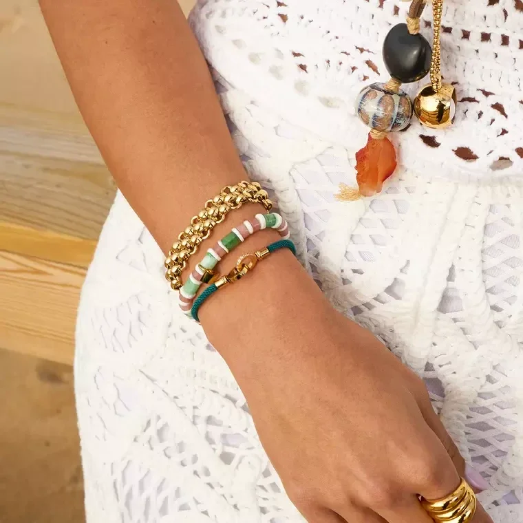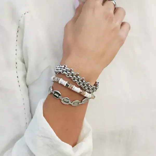 Deze armband met een meervoudige schakel is gemaakt van hypoallergeen edelstaal. Verkrijgbaar in zilverkleur en goldplated.