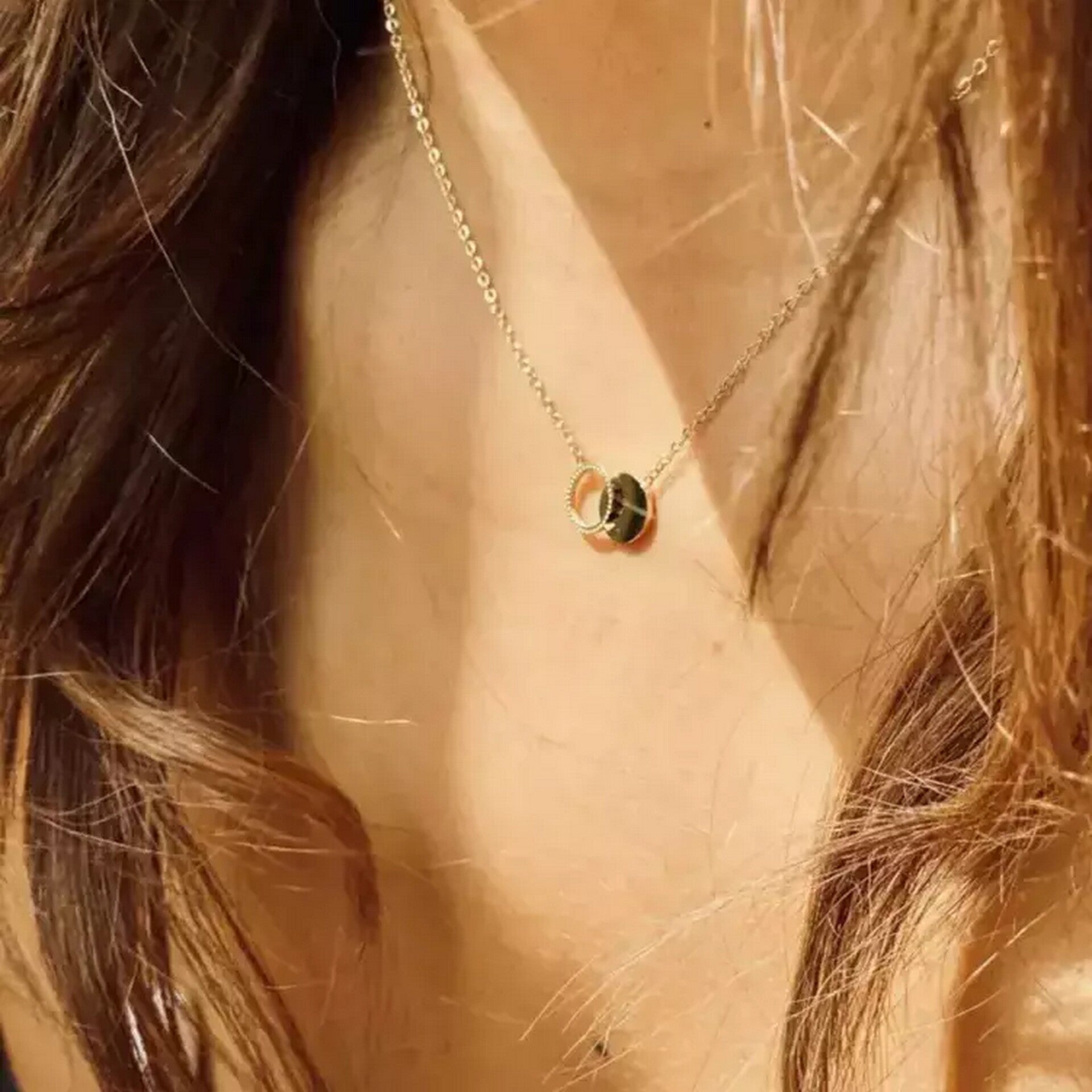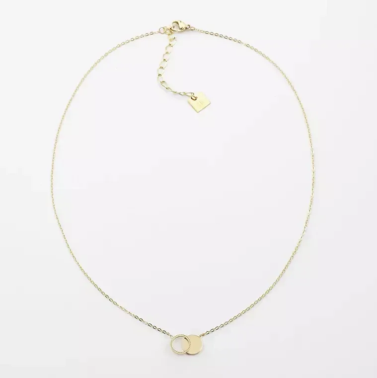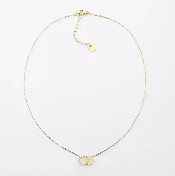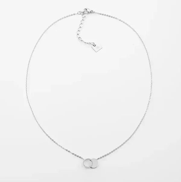 Deze ketting met een "forever connected" hanger is gemaakt van hypoallergeen edelstaal. De hanger (ca. 15 mm) bestaat uit een dichte, gladde cirkel en een open cirkel met kabelmotief. De ketting is beschikbaar in zilverkleur en goldplated.