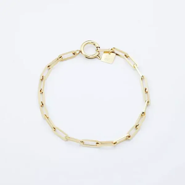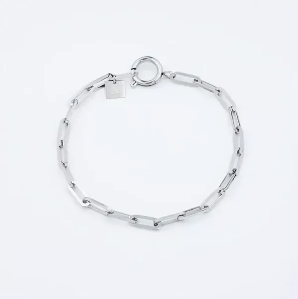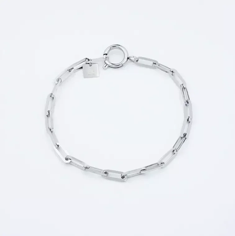 Deze armband met een platte schakel is gemaakt van hypoallergeen edelstaal. Verkrijgbaar in zilverkleur en goldplated.