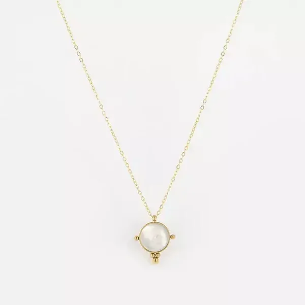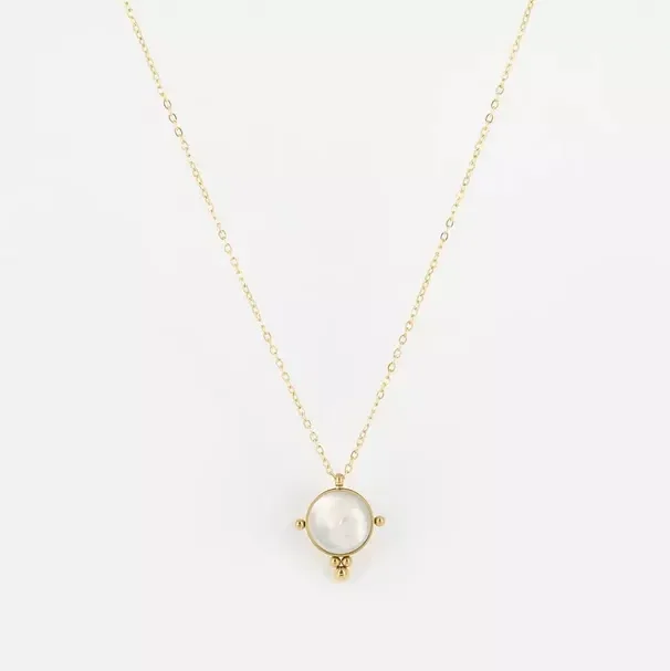 Deze ketting met hanger is gemaakt van hypoallergeen edelstaal. De hanger (ca. 15 mm) is ingelegd met een natuursteen.