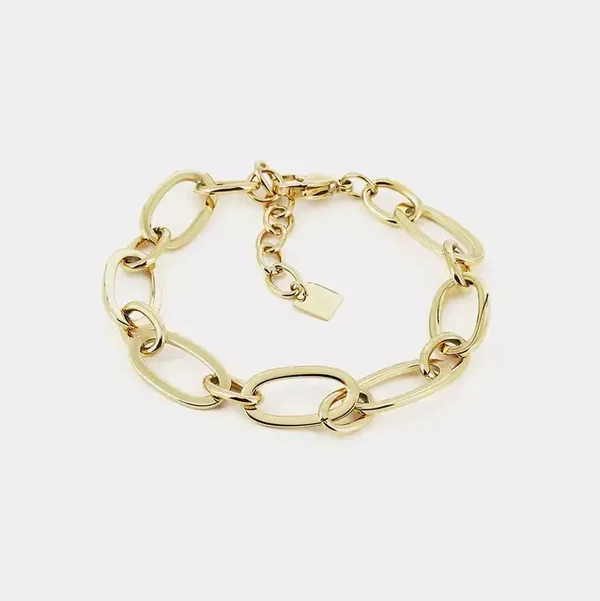 Deze armband met een platte schakel is gemaakt van hypoallergeen edelstaal. Verkrijgbaar in zilverkleur en goldplated.