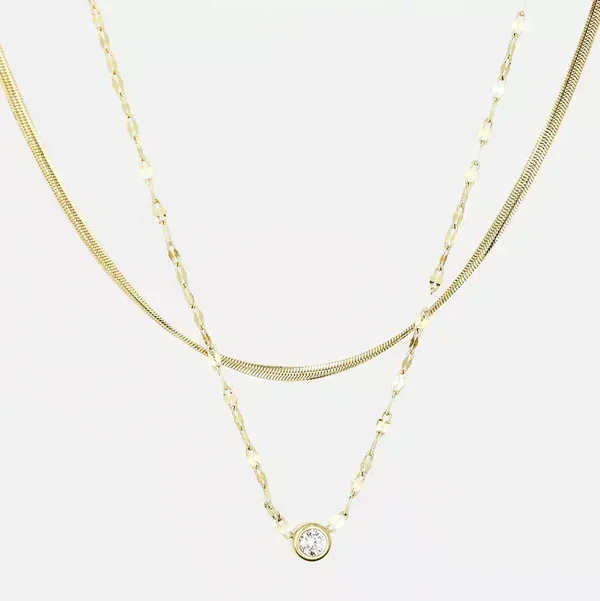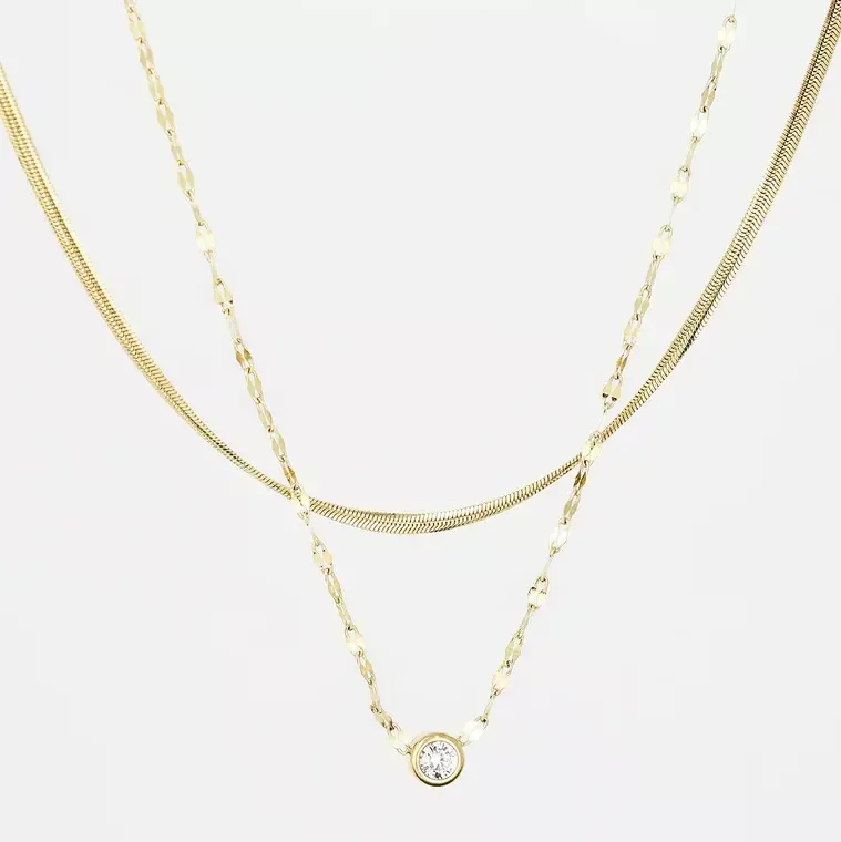 Deze ketting is gemaakt van hypoallergeen edelstaal en bestaat uit twee lijnen. De onderste lijn is voorzien van een subtiel hangertje met zirkonia. De ketting is verkrijgbaar in zilverkleur zowel als goldplated.