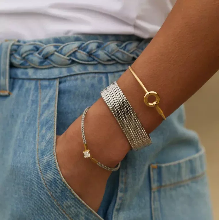 Deze opvallende en toch minimalistische armband is gemaakt van hypoallergeen edelstaal. De armband heeft een haaksluiting en is verkrijgbaar in zowel zilverkleur als goldplated.
