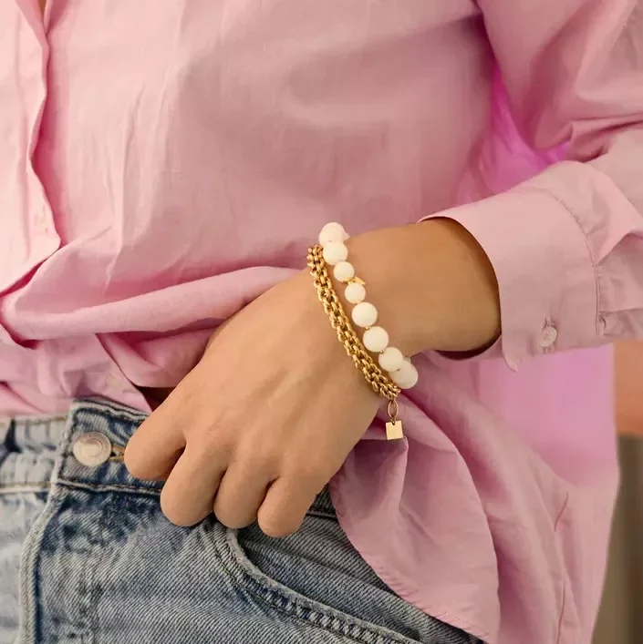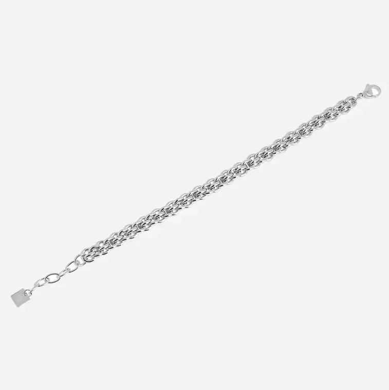 Deze schakelarmband is gemaakt van hypoallergeen edelstaal. Verkrijgbaar in zilverkleur zowel als goldplated.