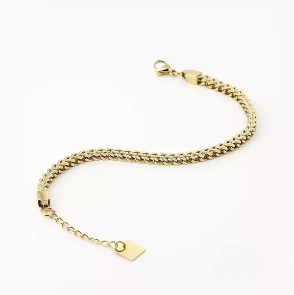 Deze armband met een wat grovere, dikke schakel, is gemaakt van goldplated, hypoallergeen edelstaal.