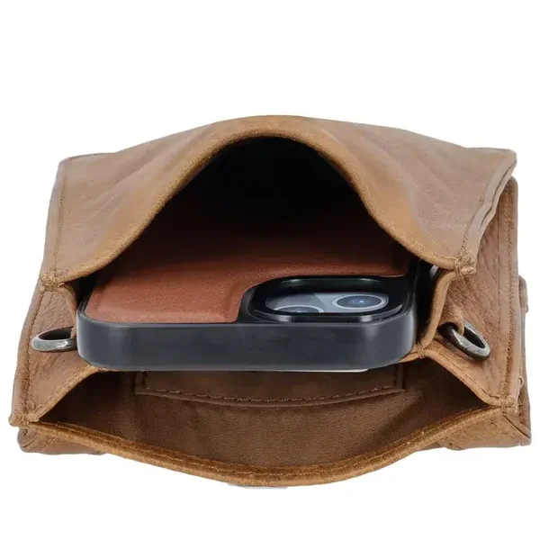 Dit telefoontastje is uiterst praktisch door de slimme indeling. Het hoofdvak is verdeeld in twee compartimenten, zodat je je telefoon gescheiden kunt houden van de rest van je spullen. Je pasjes kun je netjes en geordedn opbergen in de daarvoor bestemde vakjes.