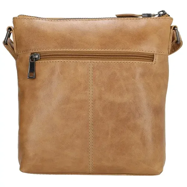 De tas, gemaakt van premium rundleer, heeft een hoofdvak met rits, een achervak met rits en een vakje met rits op de voorzijde. In het hoofdvak vind je nog een klein ritsvakje voor je meest waardevolle zaken.