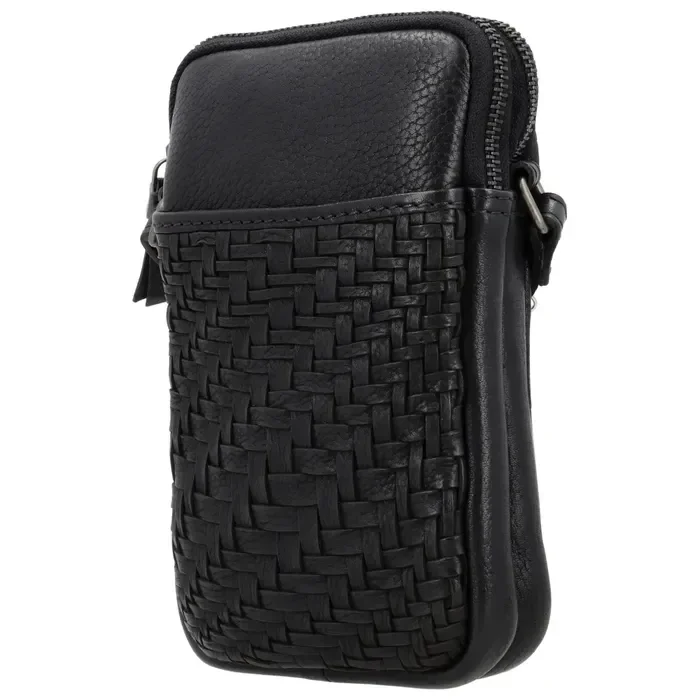 Dit telefoontasje (20 x 12 x 4 cm) van zeer hoogwaardig rundleer heeft twee ruime ritsvakken: één voor je telefoon en één voor andere zaken. Op de voorzijde is het tasje voorzien van een handgevlochten patroon in hetzelfde leer.