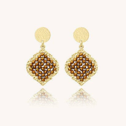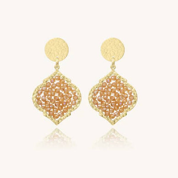 Deze oorbellen worden gemaakt van metaal (nikkel-, cadmium- en loodvrij) met een 23 karaats goudplating van 4 micron (!) en kraaltjes van kristal.