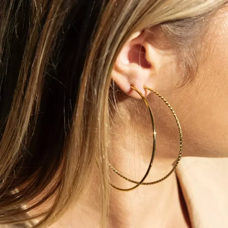 Deze creolen zijn gemaakt van goldpated, hypoallergeen edelstaal. Doorsnede: ca. 6 cm