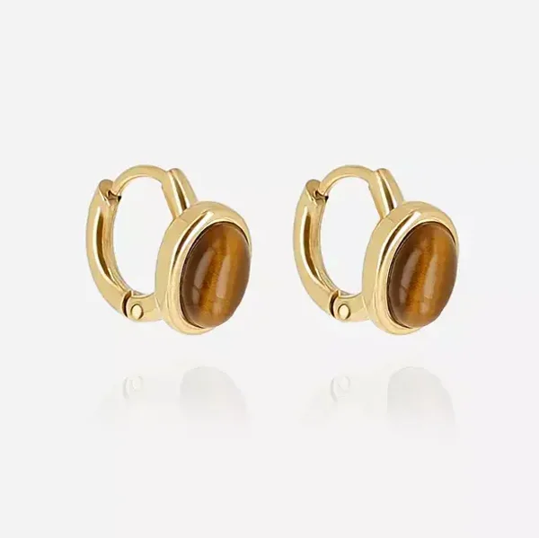 Deze oorbellen zijn gemaakt van goldpated, hypoallergeen edelstaal, voorzien van een natuursteen.