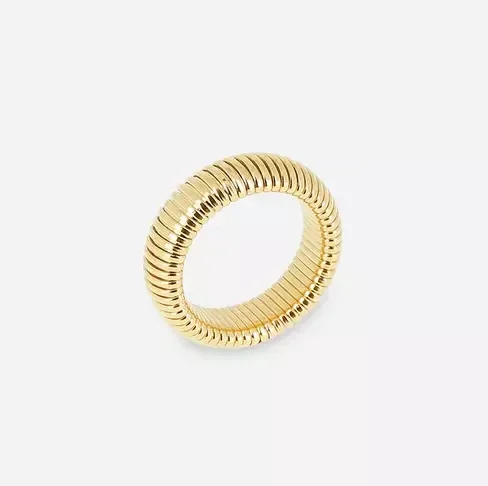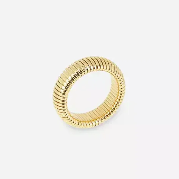 Deze licht rekbare ring is gemaakt van hypoallergeen, goldplated edelstaal en is verkrijgbaar in verschillende maten: