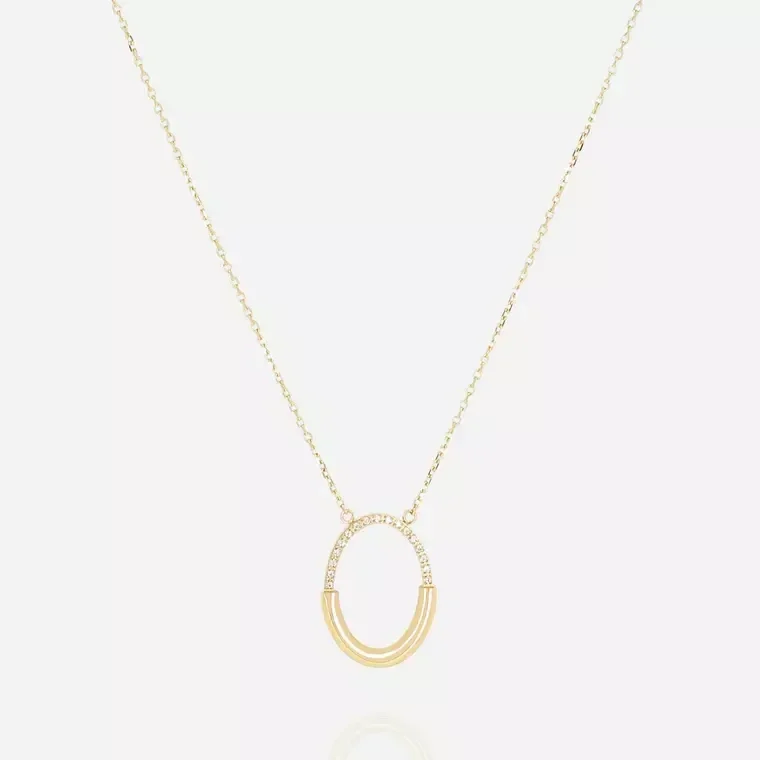 Deze ketting is gemaakt van hypoallergeen edelstaal. De hanger is voorzien van kleine zirkonia's.