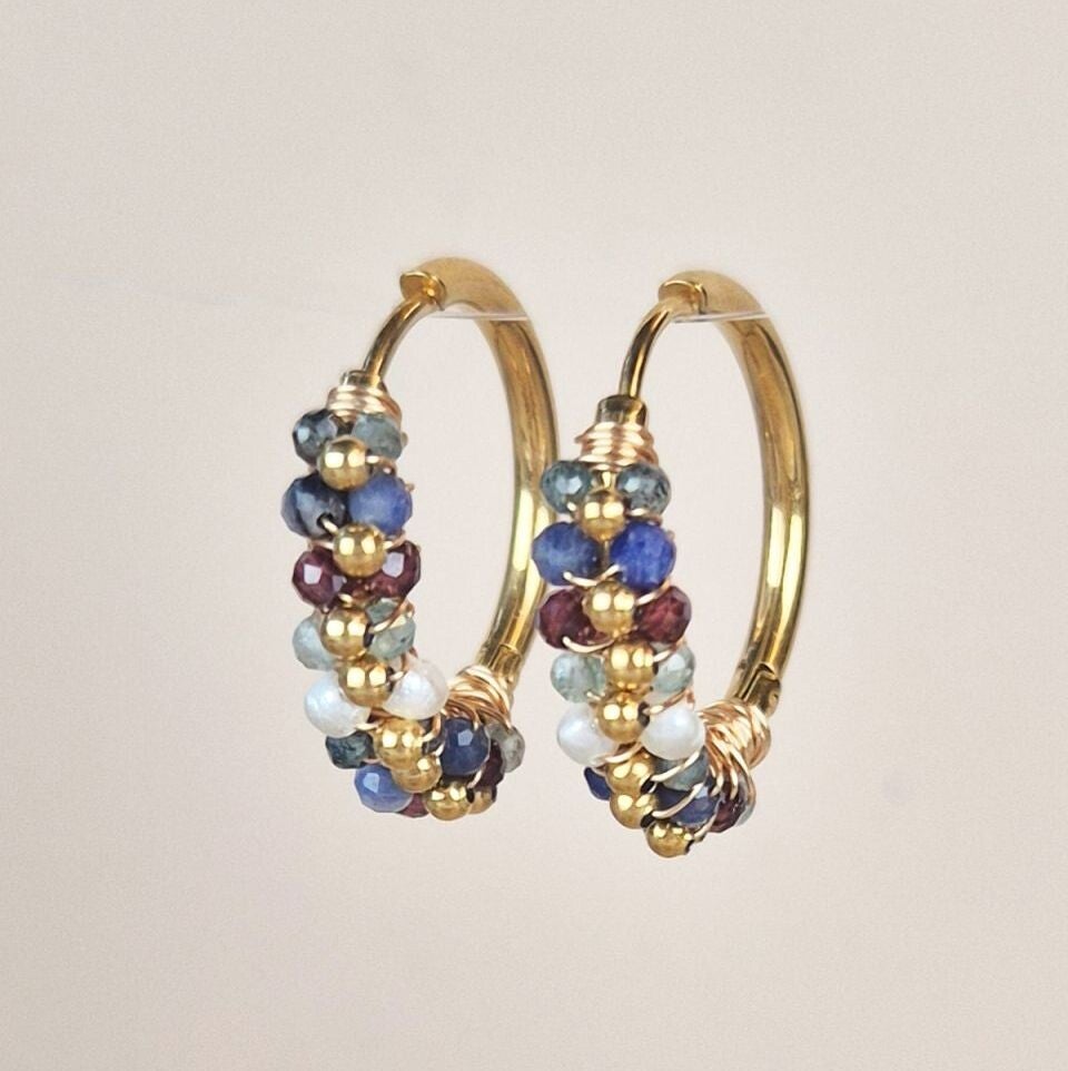 Deze oorbellen van My Heritage zijn gemaakt van goldplated edelstaal, handmatig bezet met hoogwaardige kwaliteit natuursteentjes/edelsteentjes. De oorbel is een zogenaamde "klapcreool"en sluit dus makkelijk met een klikje.