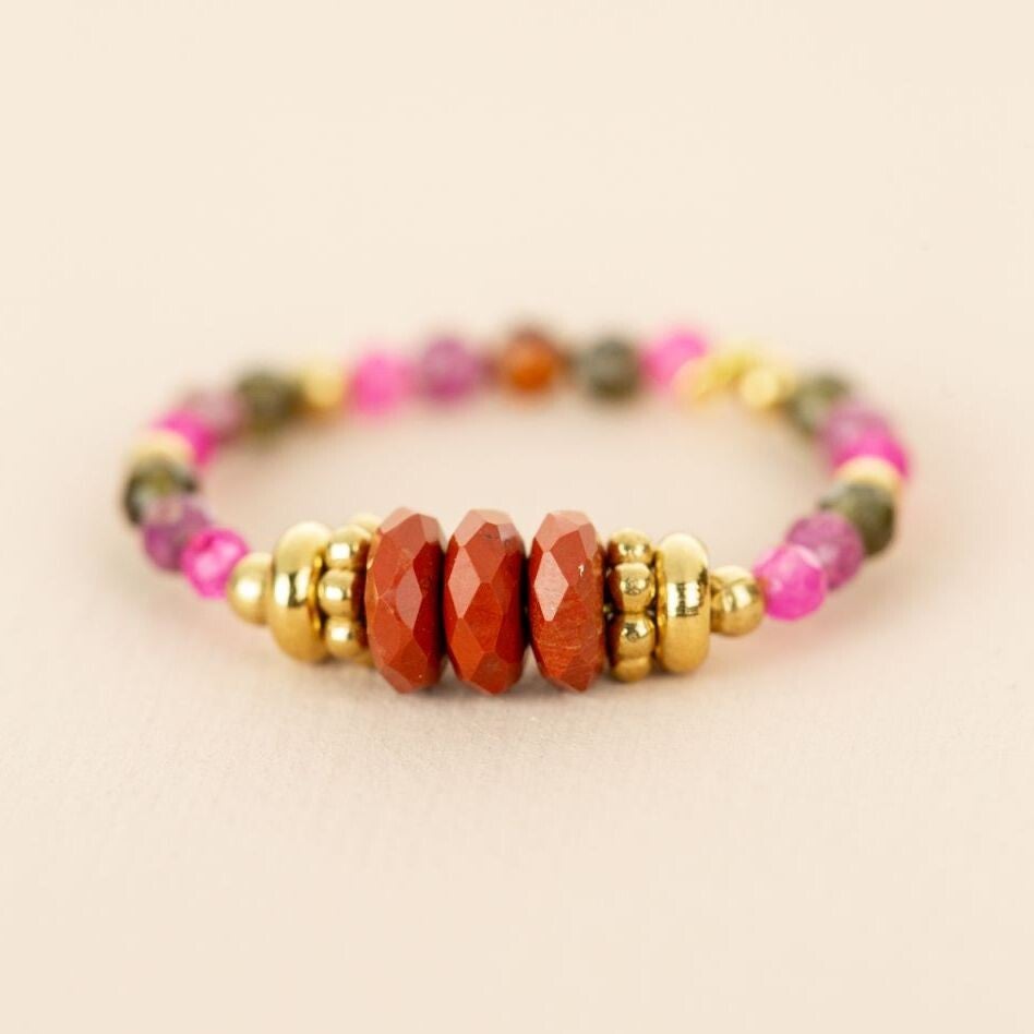 Deze ring van My Hertitage is elastisch en gemaakt van edelstaal en zeer kwalitatieve natuursteentjes/halfedelsteentjes.