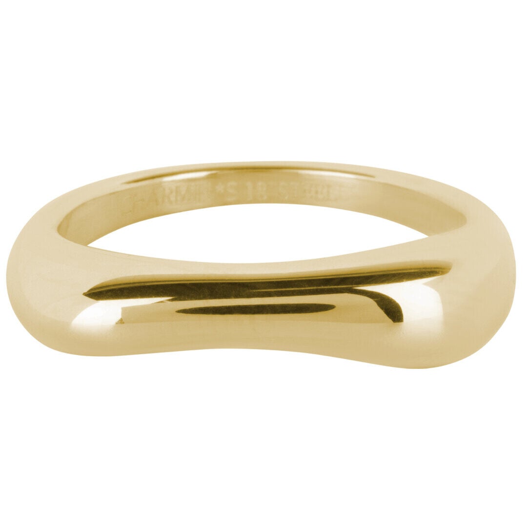 Deze opvallende, abstracte ring is gemaakt van goldplated, hypoallergeen edelstaal en is verkrijgbaar in verschillende ringmaten: