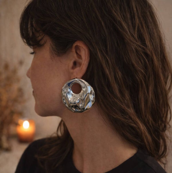 Ultimate statement pieces! Deze oorbellen op steker zijn gemaakt van hypoallergeen, goldplated edelstaal.Doorsnede: 68 mm (!)Afwerking: gehamerd glans