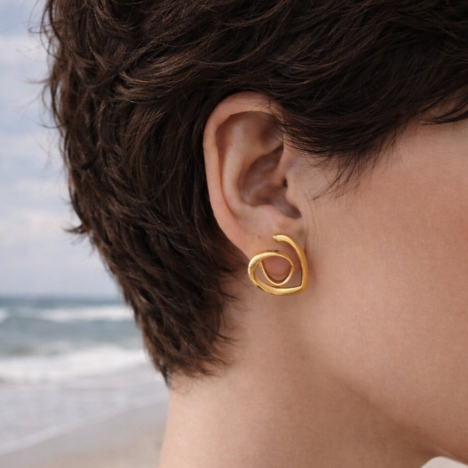 Een hartje, maar dan abstract! Deze oorbellen op steker zijn gemaakt van nikkelvrij en hypo-allergeen edelstaal, voorzien van een plating in goud. Doorsnede: ca. 2,2 cmAfwerking: geborsteld (dus halfmat)