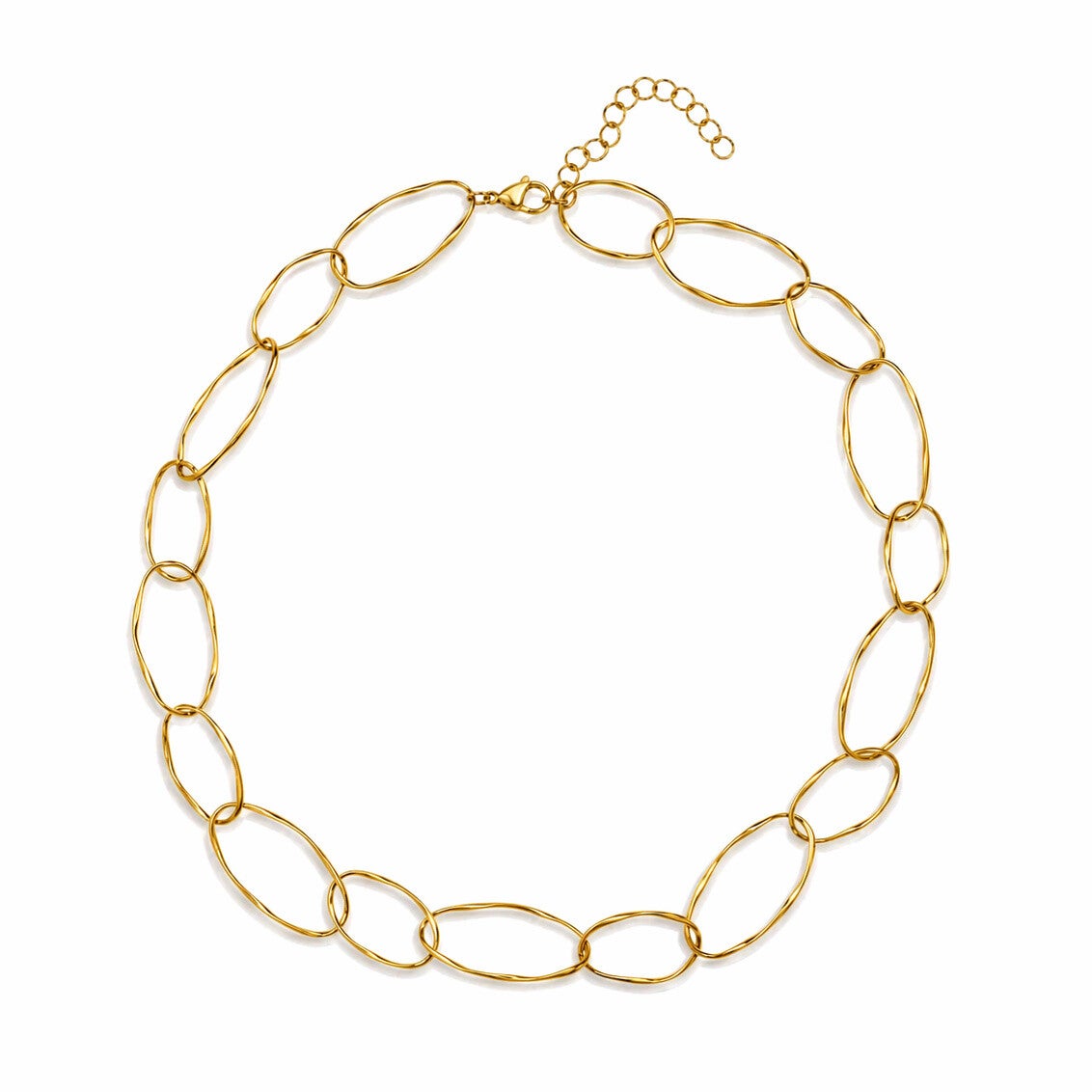 Deze ketting is licht gehamerd en dat geeft net even wat meer glans aan je look! De korte ketting is gemaakt van goldplated, hypoallergeen edelstaal.Lengte: ca. 41 cm + 5 cm verlengketting Afwerking: glans, licht gehamerd